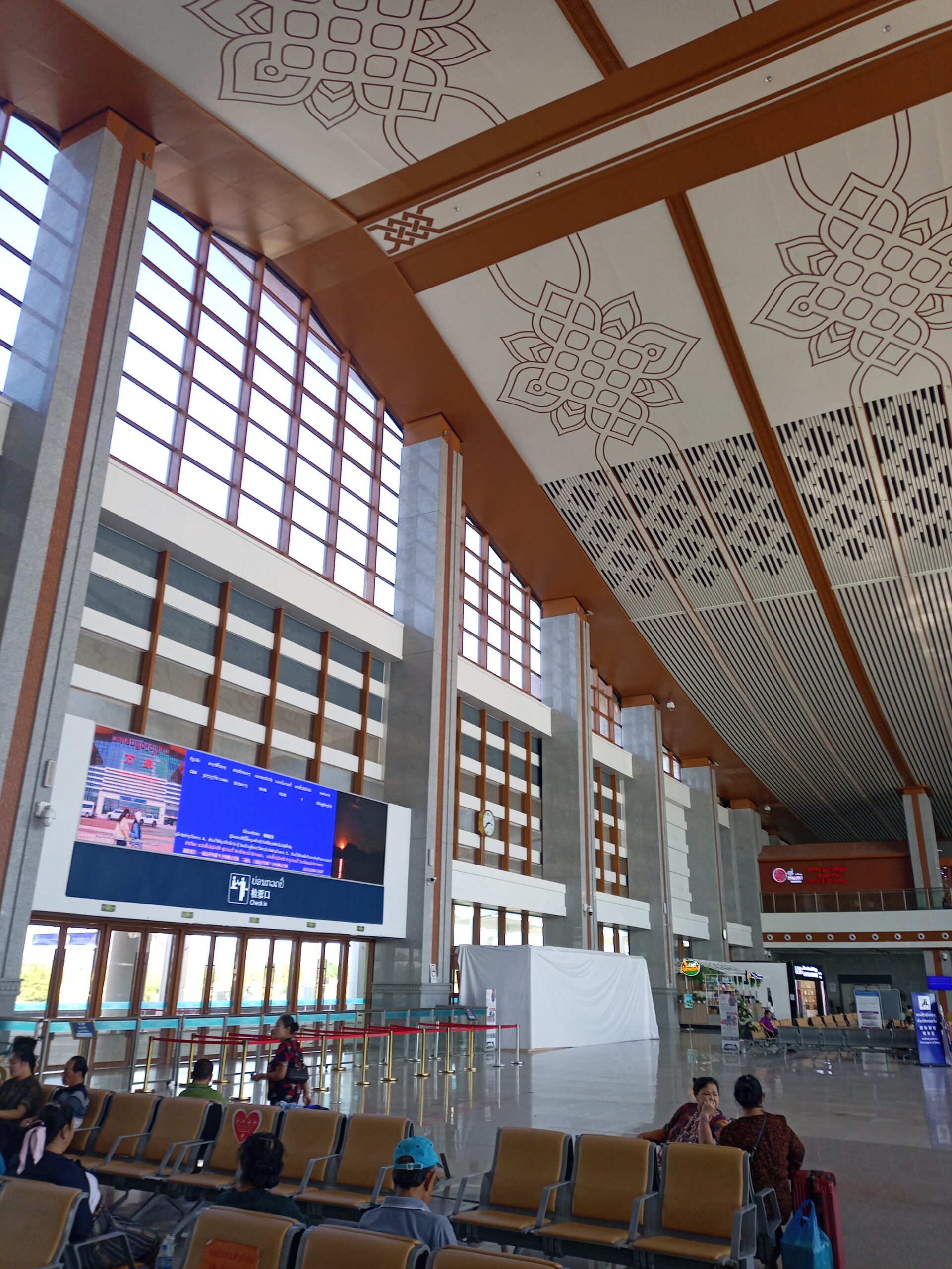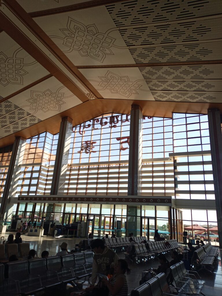 椅子もいっぱいあり、清潔で、新しく、天井高すぎ。僧侶優先シートもありました。乗る時も僧侶優先でラオスっぽいかな。でも、ここまで天井高い必要はないと思う。