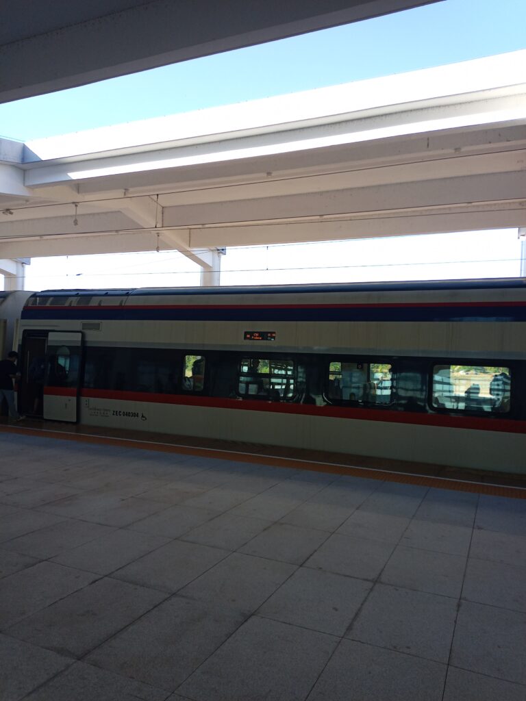 列車はまあ新幹線みたいなもんです。可もなく不可もなしですね。最高速は160kmくらいです。車内に速度表示がありますが、ずーと160kmという感じではなく、割と減速したりしてます。山も多いから安全運転なのかな。