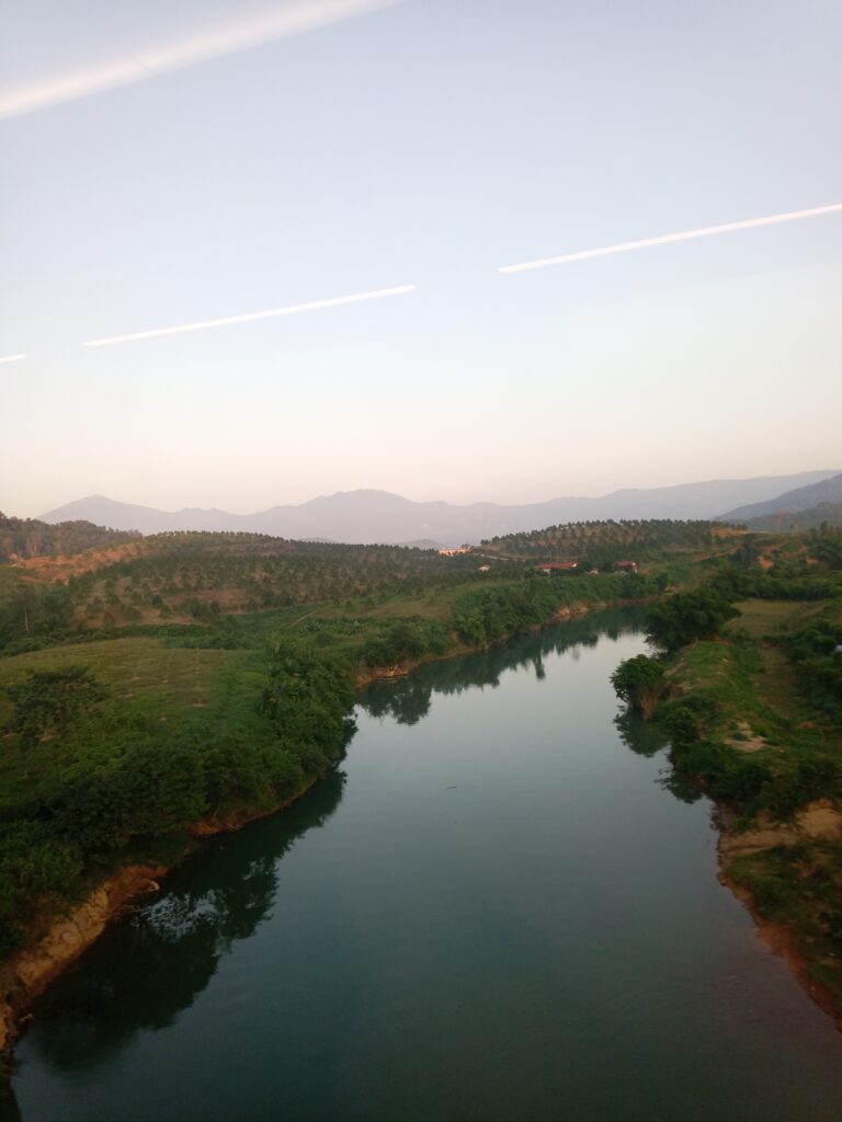 ラオスの大自然の中を列車は進みます。景色は見慣れないので面白い。