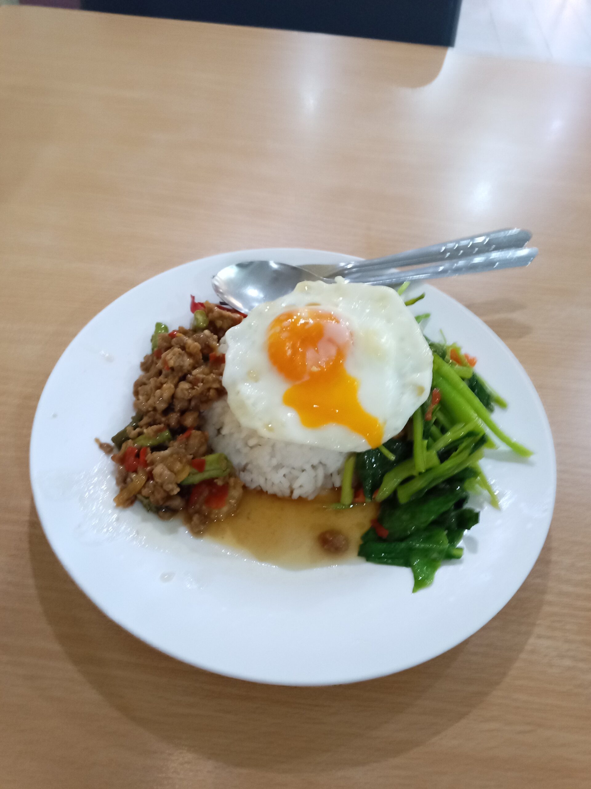 ドンムアン空港のMagic Food Parkでお昼ご飯。どっから見ても美味しそうで、実際美味しい。料金は60THB、卵は15THBのオプションです。75THB=340円 安い!