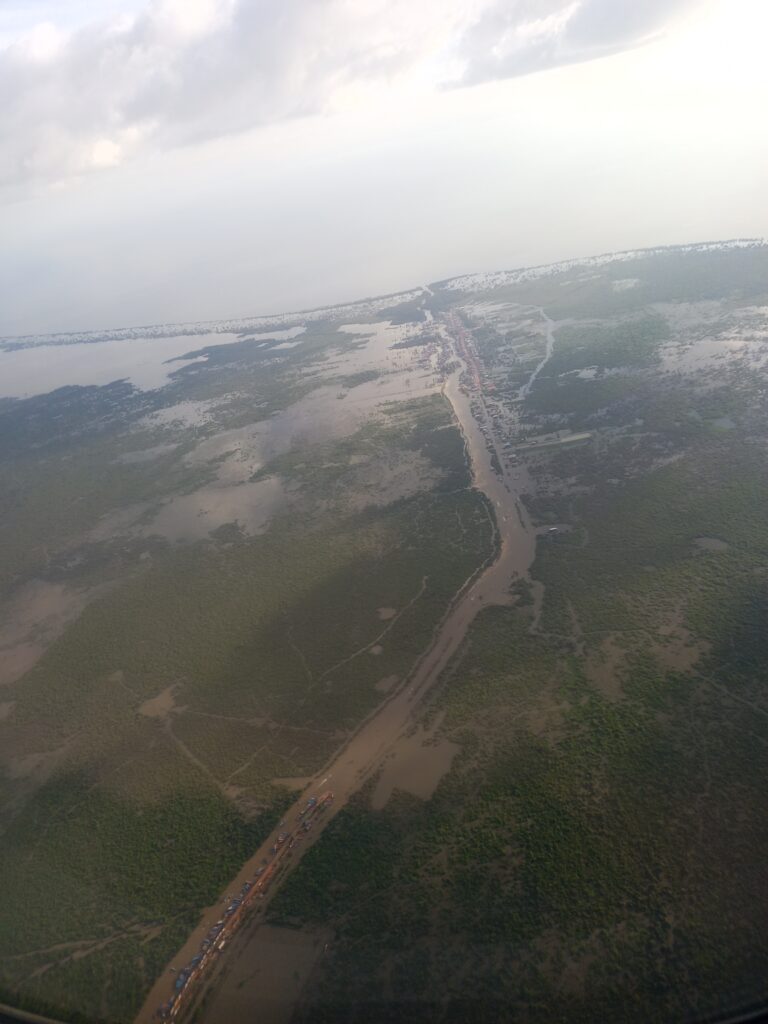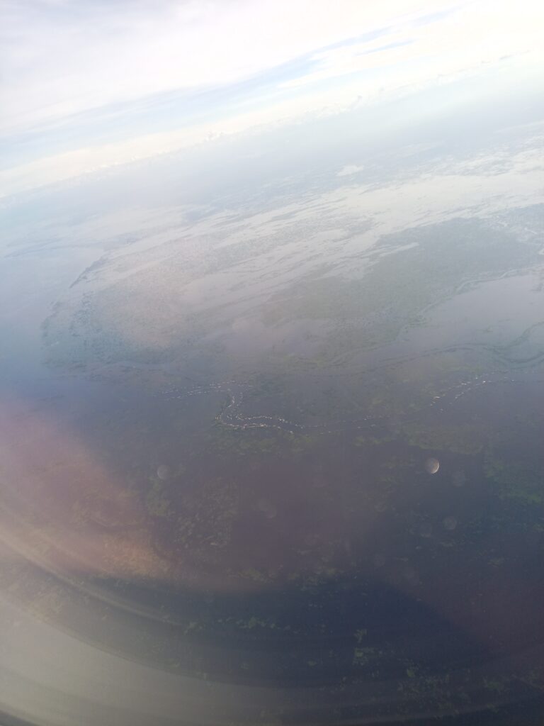これ絶対トンレサップ湖というあたりです。ここを過ぎて北に新しいシエムリアップ国際空港があります。