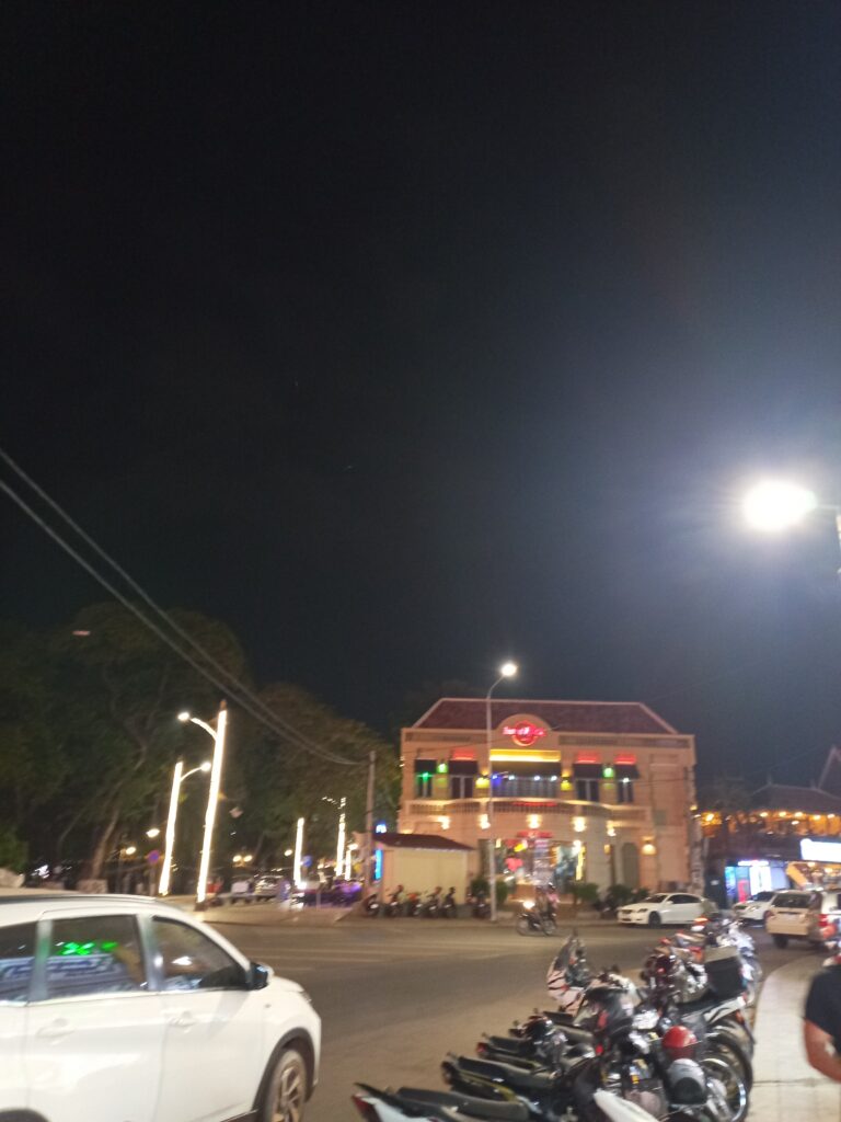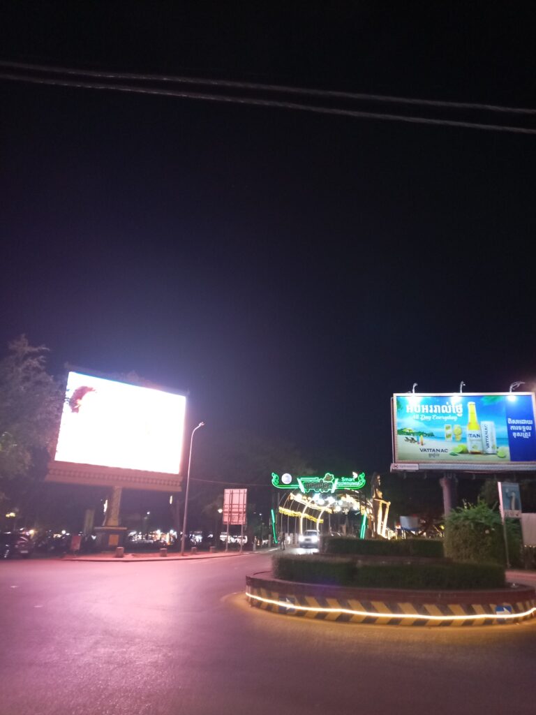 空港についてからの行動はいつもと同じ。空港前の道を横断するとやはり喫煙所がありまして、そこで一服。その後、バスでシエムリアップ市街に行こうと思いましたが、バスが来るのが1時間後なのでGrabを呼べるか見てると、トゥクトゥクのお兄さんが寄ってきます。Grabの料金を確認して、その料金に値段交渉して了解されました。確か20USDくらいです。ちょっと高いなと思いましたが、空港からシエムリアップのホテルまでは約50Kmもあります。札幌から新千歳空港と同じくらいの距離です。