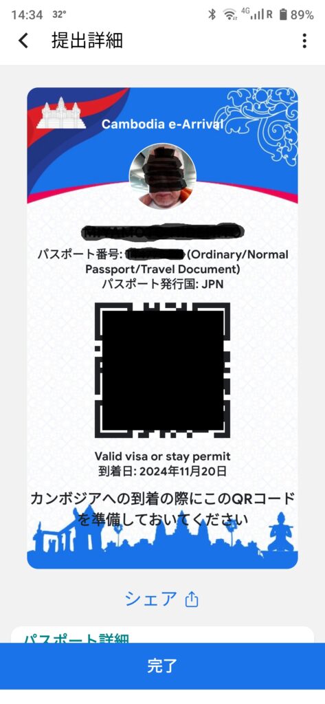 空港の入国管理に行くと、紙の入国審査書類は廃止されてすべてネットになってると掲示されてました。慌てて、空港で登録した画面がこれです。e-Visaは別にあり、紙でプリントアウトしていきました。カンボジアは入国カードと出国カードに割とうるさいので真剣に登録しましたが、窓口で見せるとチラ見で終わり。係官の興味はe-Visaへ。せっかくQRコードついてるのにスキャンもしません。こりゃ、出国時に揉めたらヤダなと思いましたが、そのままスルー。