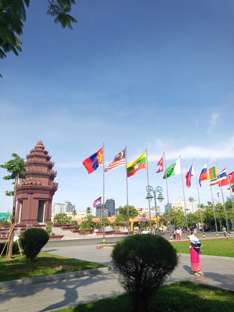 独立記念塔の前にはASEAN各国の国旗があります。あーASEANだなとしみじみ思いました。反対側には国連とか日本とかアメリカ、中国のその他大勢の国旗がありました。