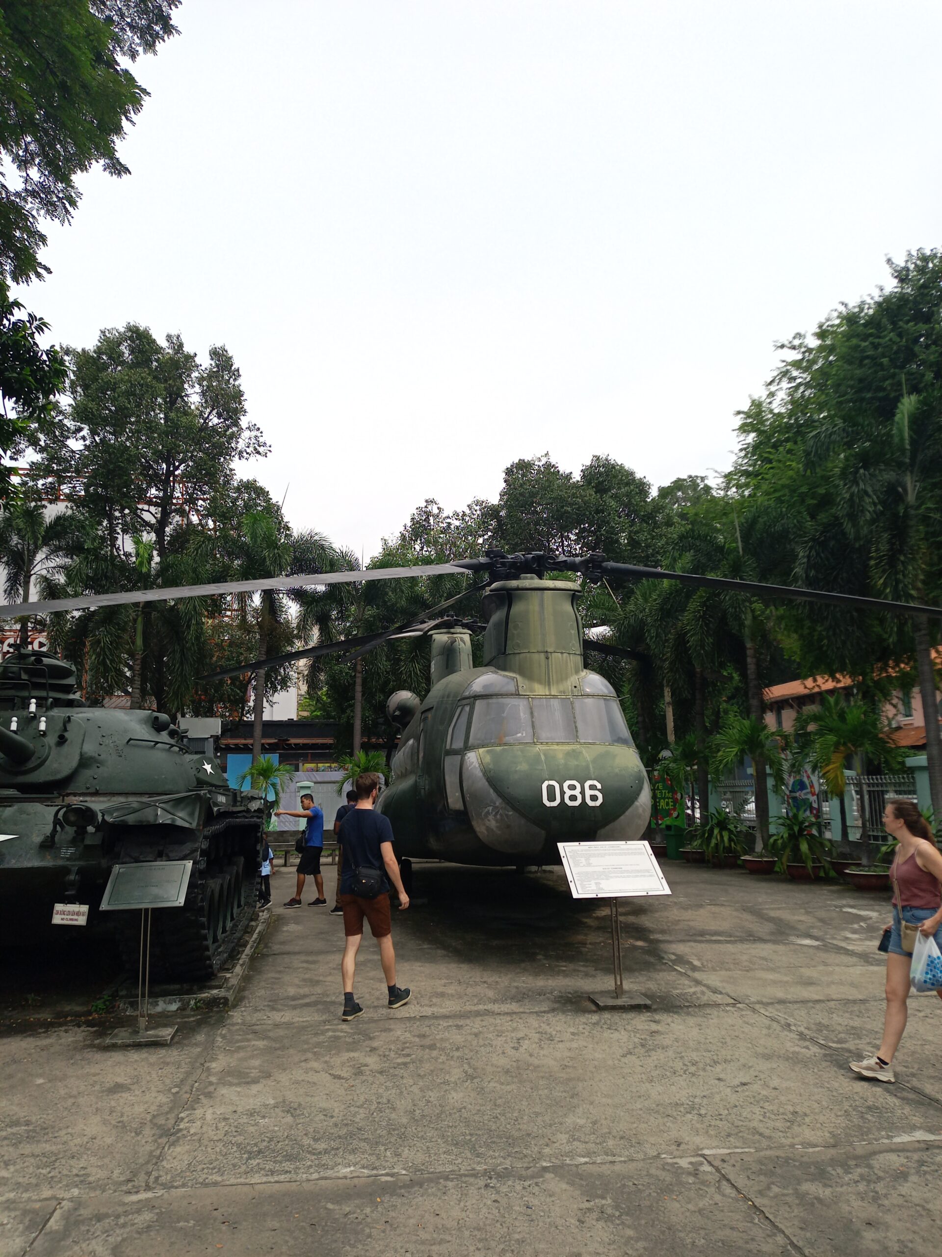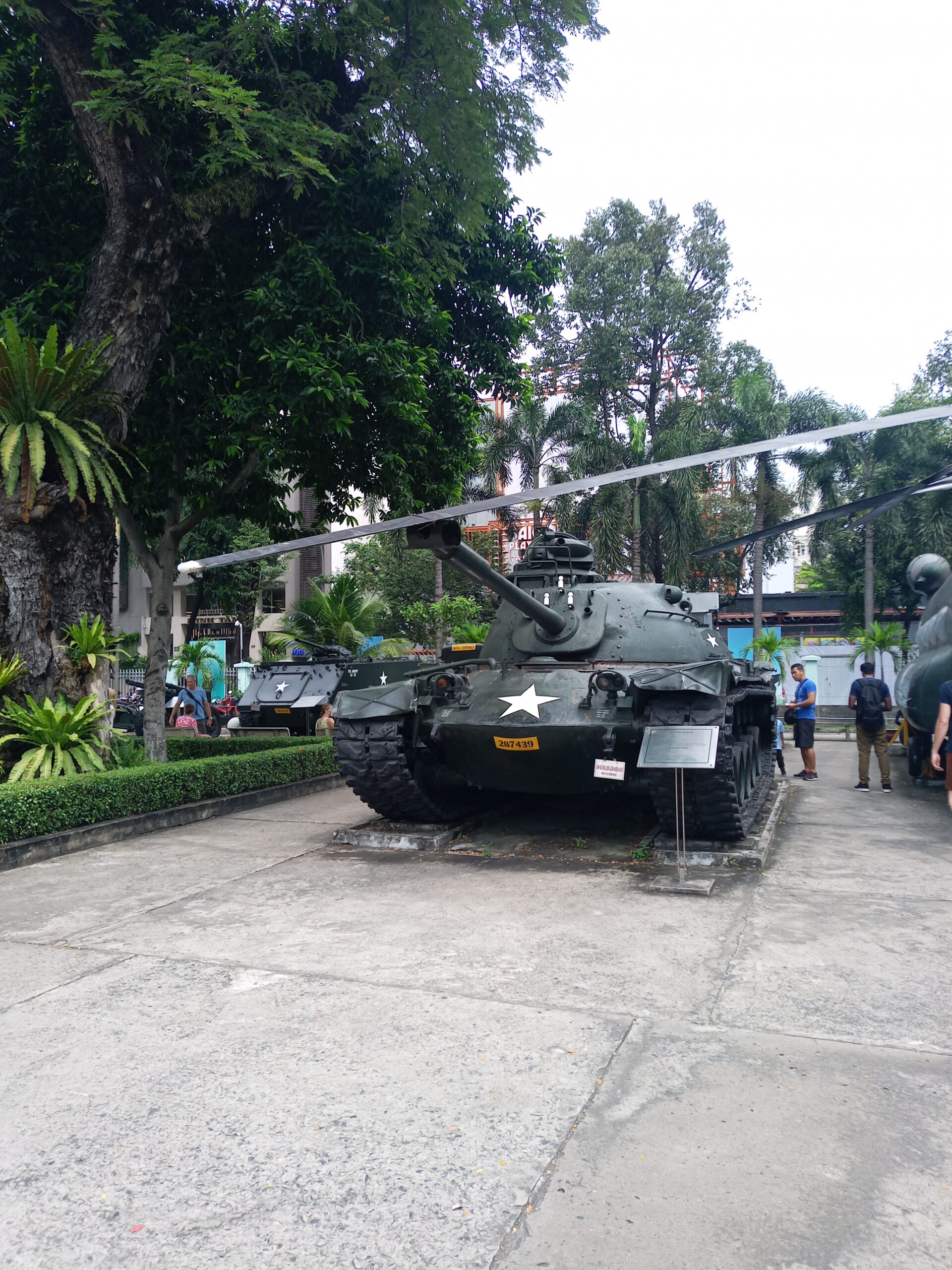 おそらく鹵獲した米軍のヘリと戦車が前庭に展示されています。