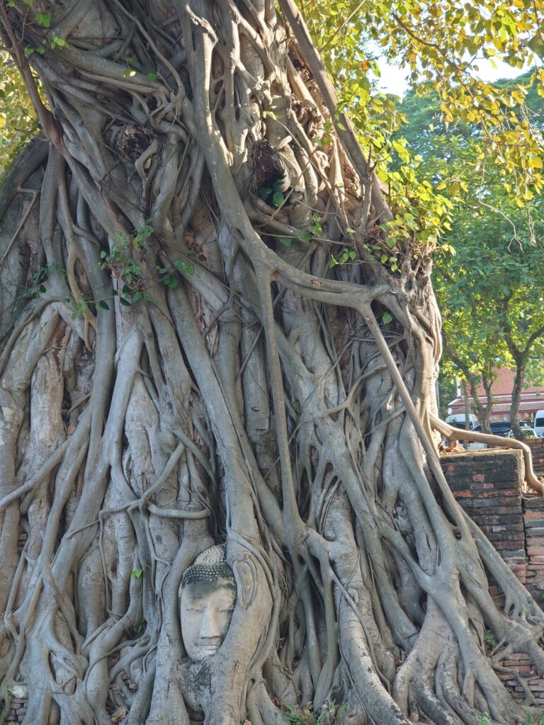 入口を入って右側にある菩提樹の根に覆われた仏頭です。超人気コンテンツなのでなかなか写真を撮るタイミングが難しい。