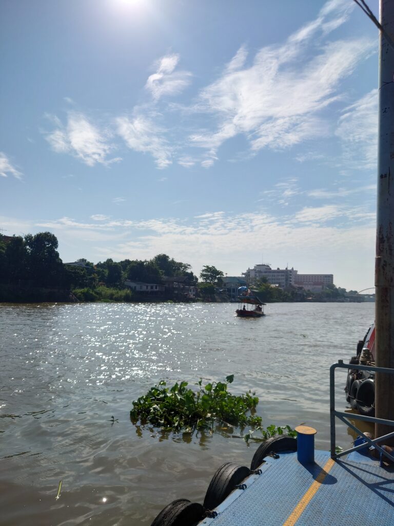 ホテルを出発して帰りも渡し船でアユタヤ駅に向かいます。相変わらず良い天気。