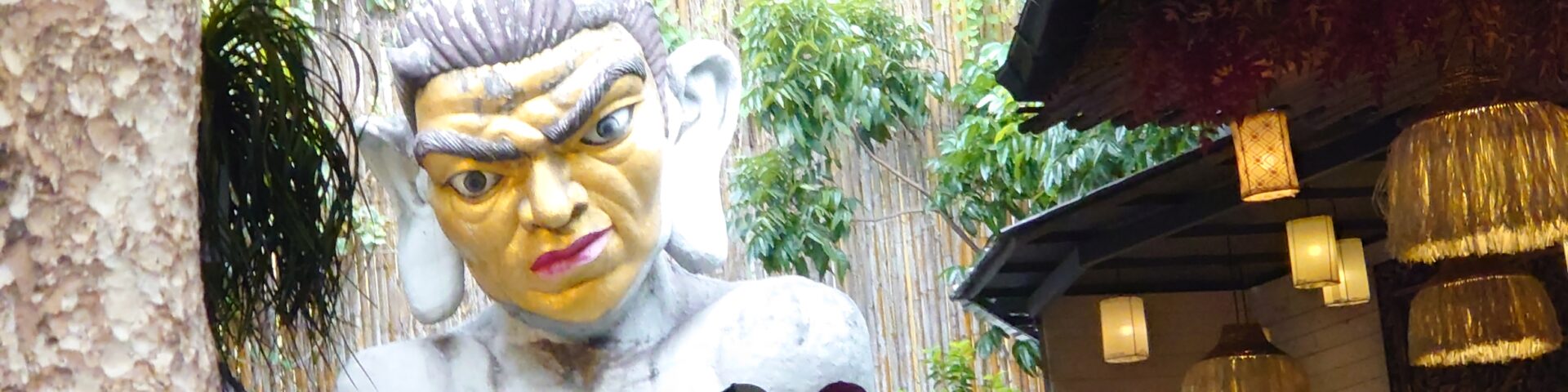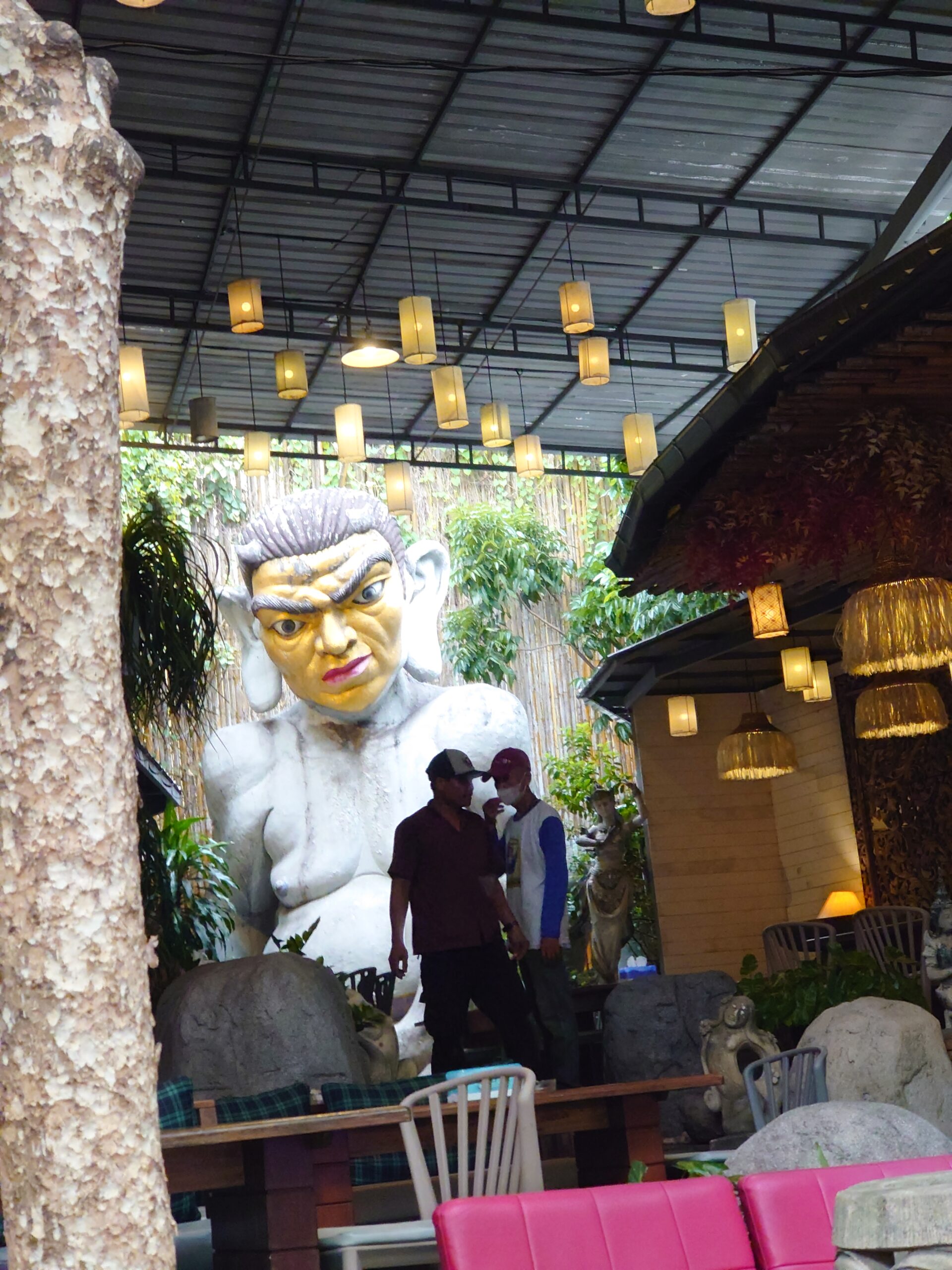 写真はカオサンロードのカフェ。なんか迫力ある像が後ろにあり、思わずここでお昼ご飯食べました。