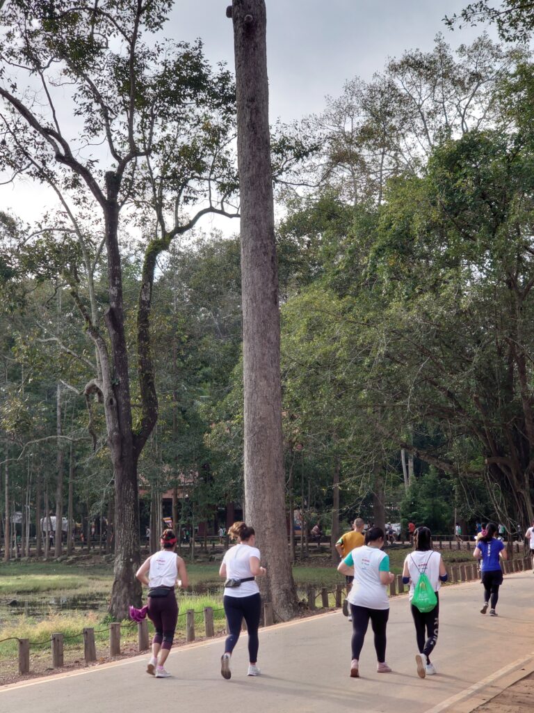 今日もレンタルバイクを借りて早朝5時ころに向かいます。涼しくて空いてます。アンコールワットに行くと何故かランニングする方がたくさんいました。