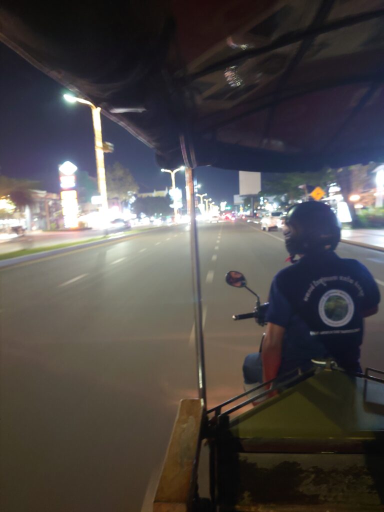 ホテルからの交通手段はトゥクトゥクです。ホテル前にたむろしていたので$4で交渉成立。