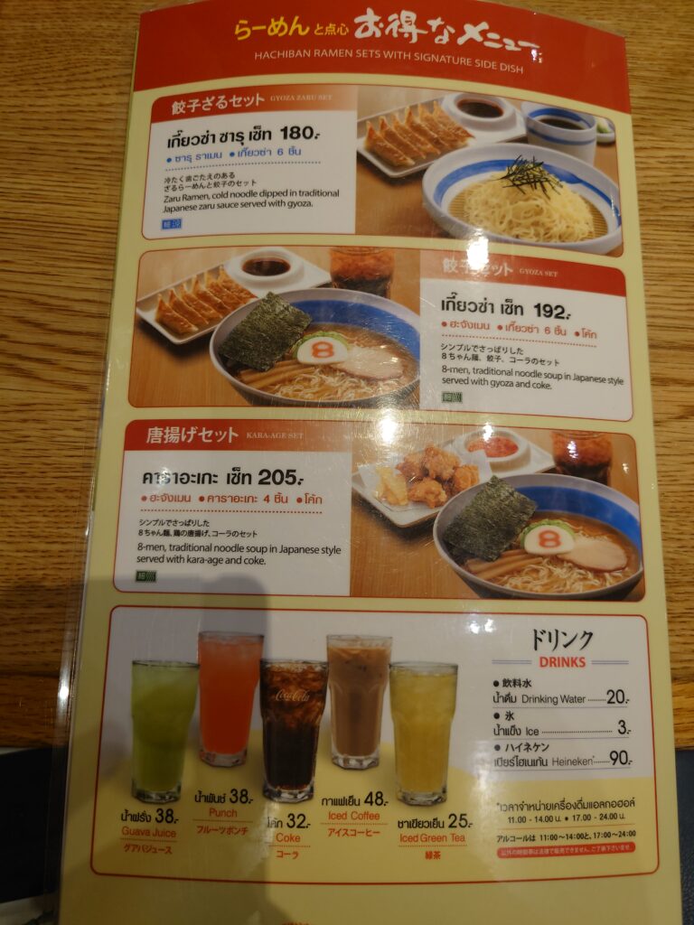 でもラーメン・餃子・ドリンクで192THB=750円くらいなので日本よりはだいぶお安いです。