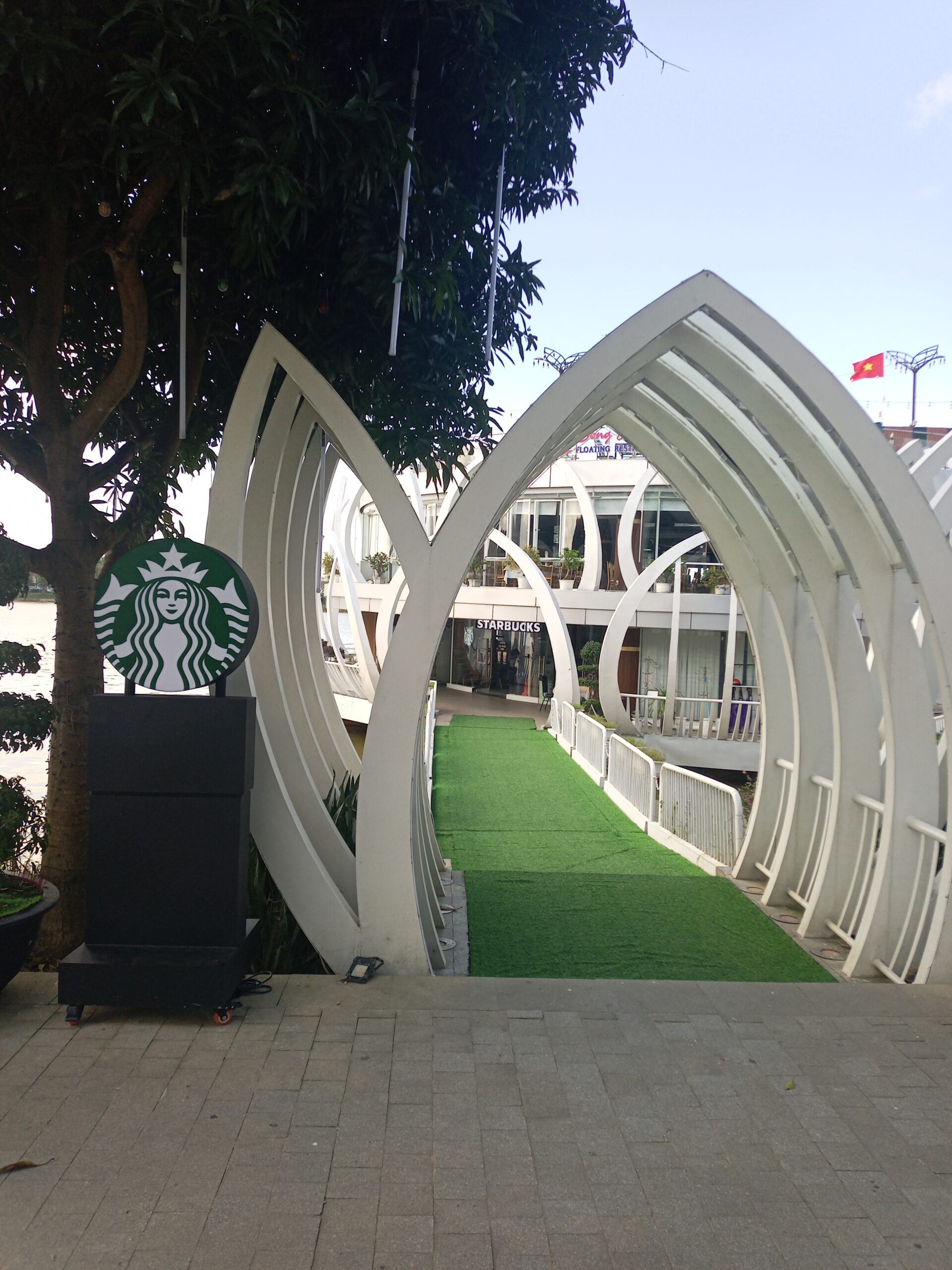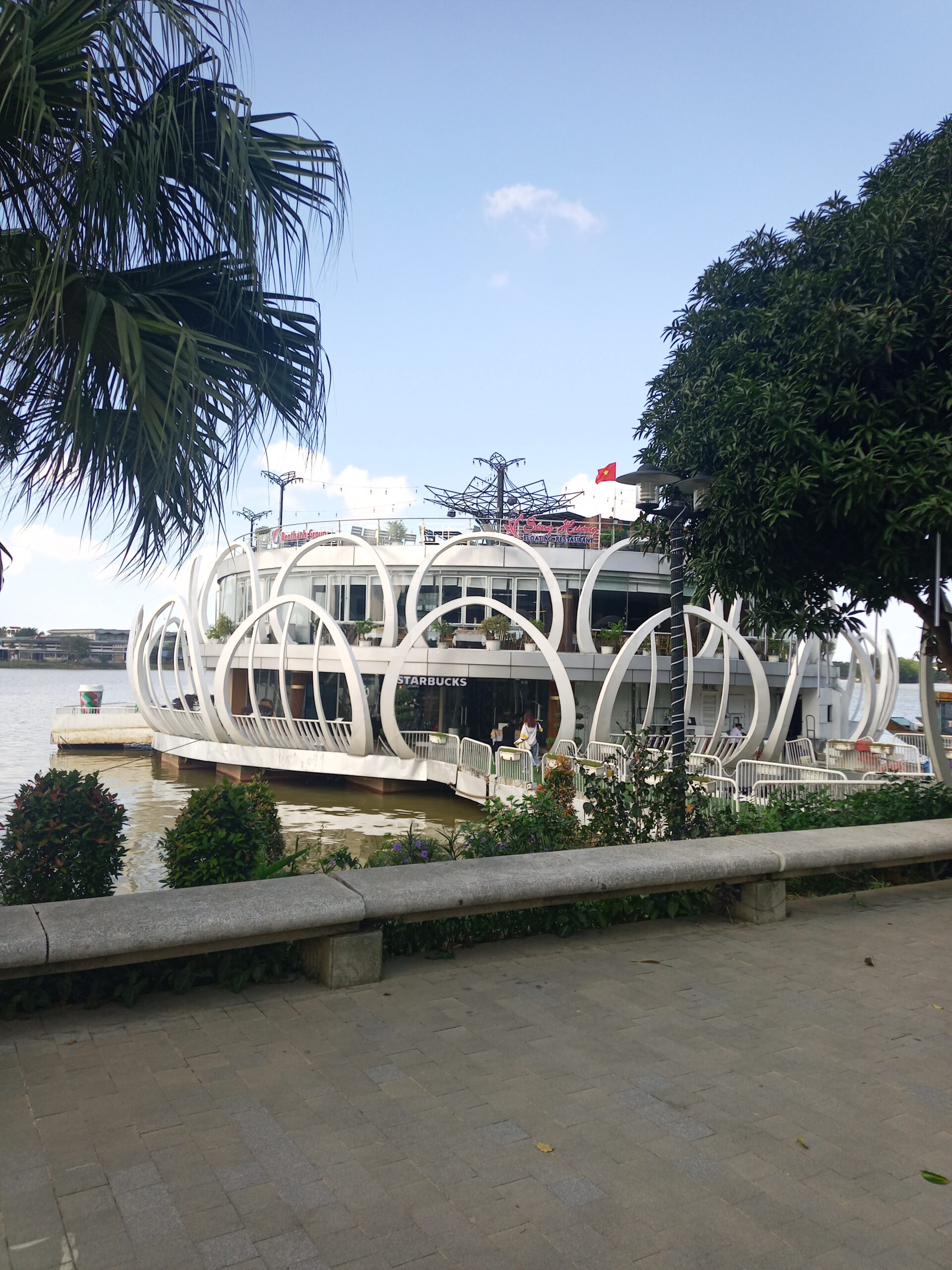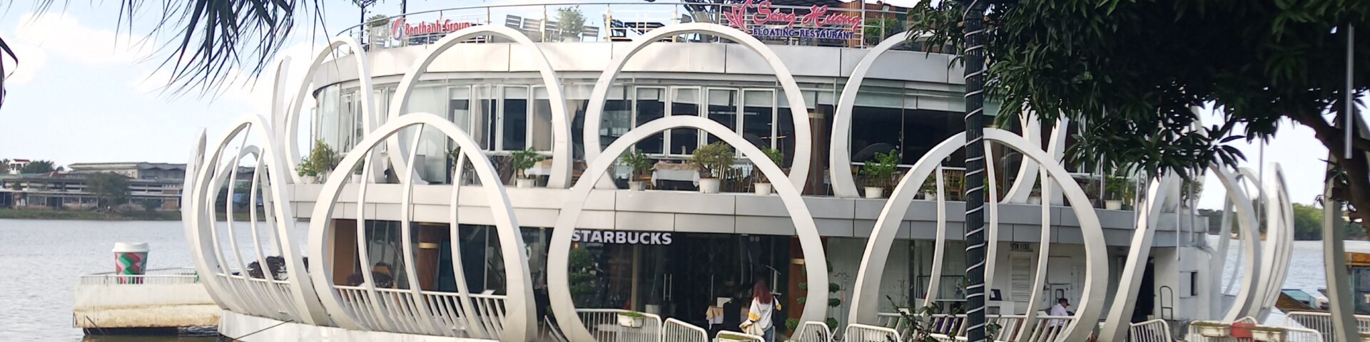 川に浮かぶ遊覧船のようなスターバックス。