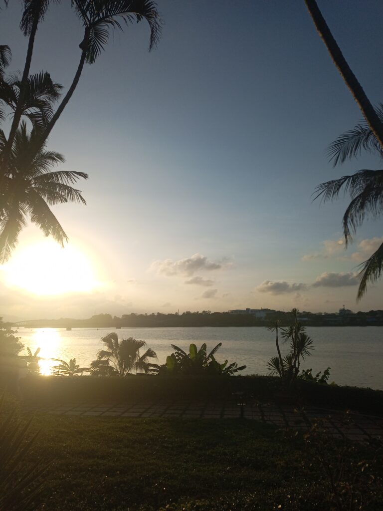 フエの夕陽。ホテルの庭から。