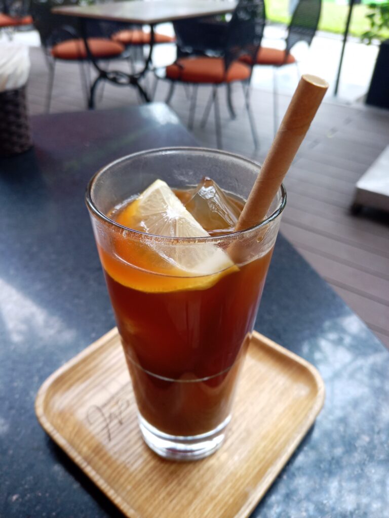 美術館の前庭でティータイム。優雅すぎるなー。ストローが紙でした。