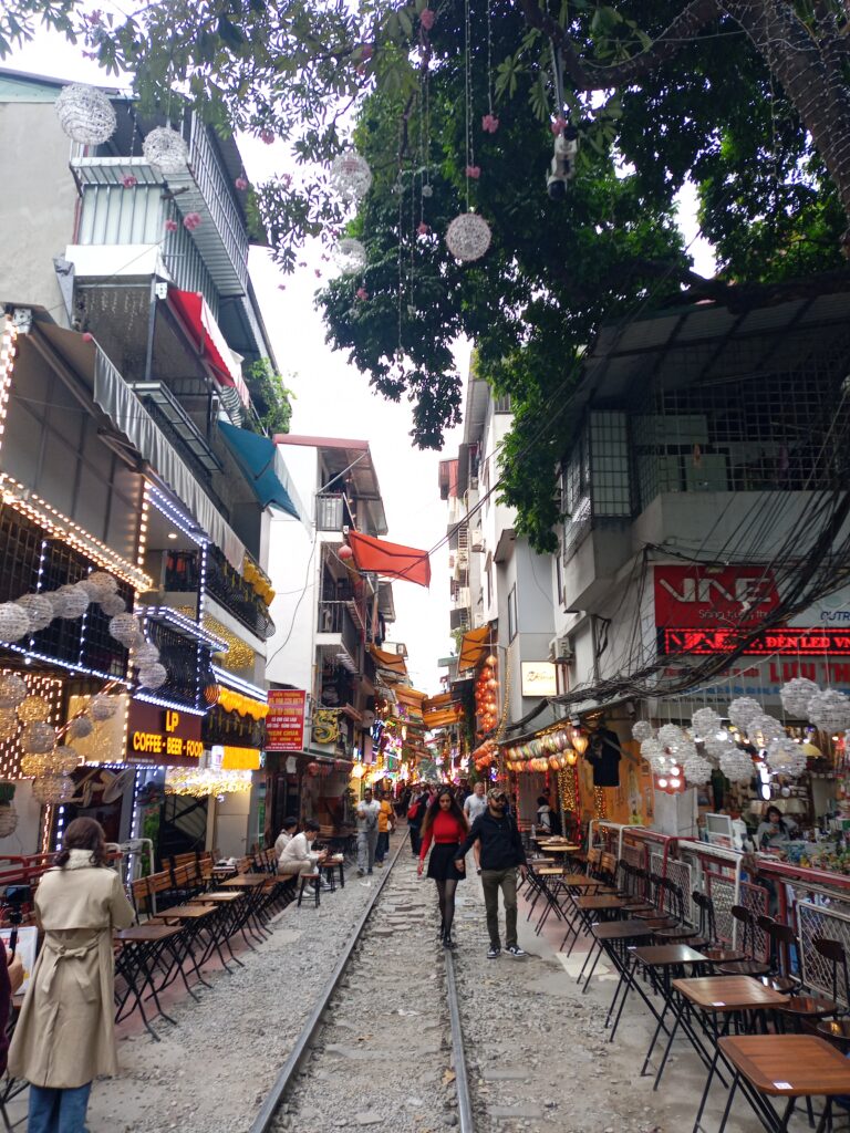 途中に有名な線路沿いのカフェがありました。凄い観光客です。