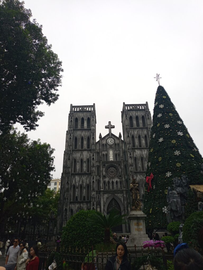 踏切を過ぎて歩いて行くとハノイ大聖堂がありました。映画などに出てきそうな雰囲気です。アジアにもこんなの作って信者増やすんだから本当にキリスト教は恐ろしい。旧フランス植民地ですからガリガリのカトリックですな。