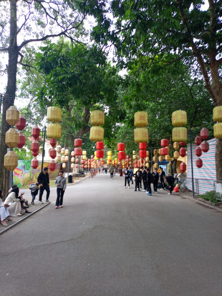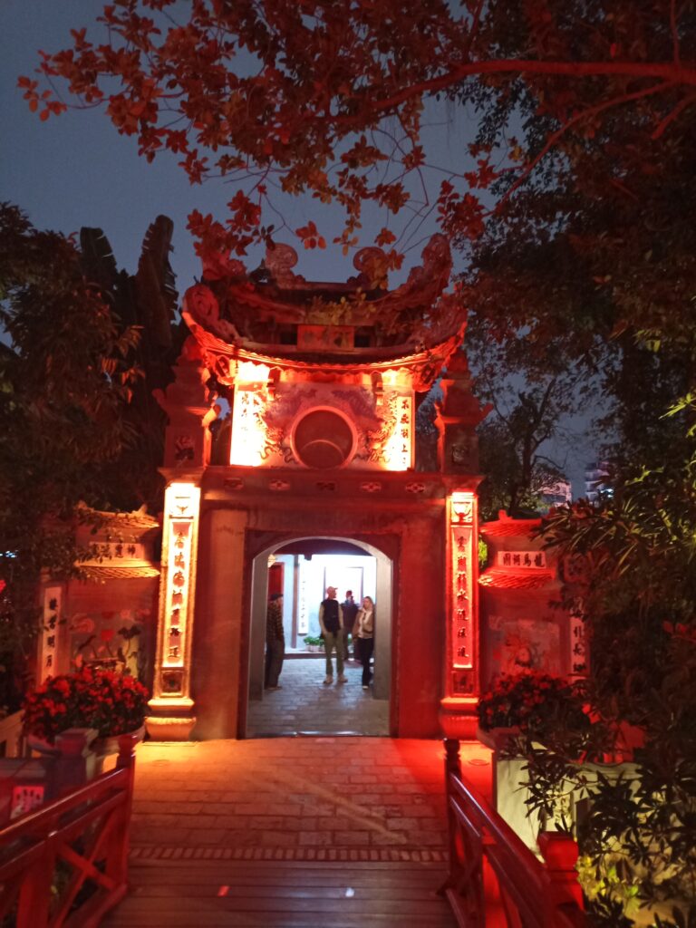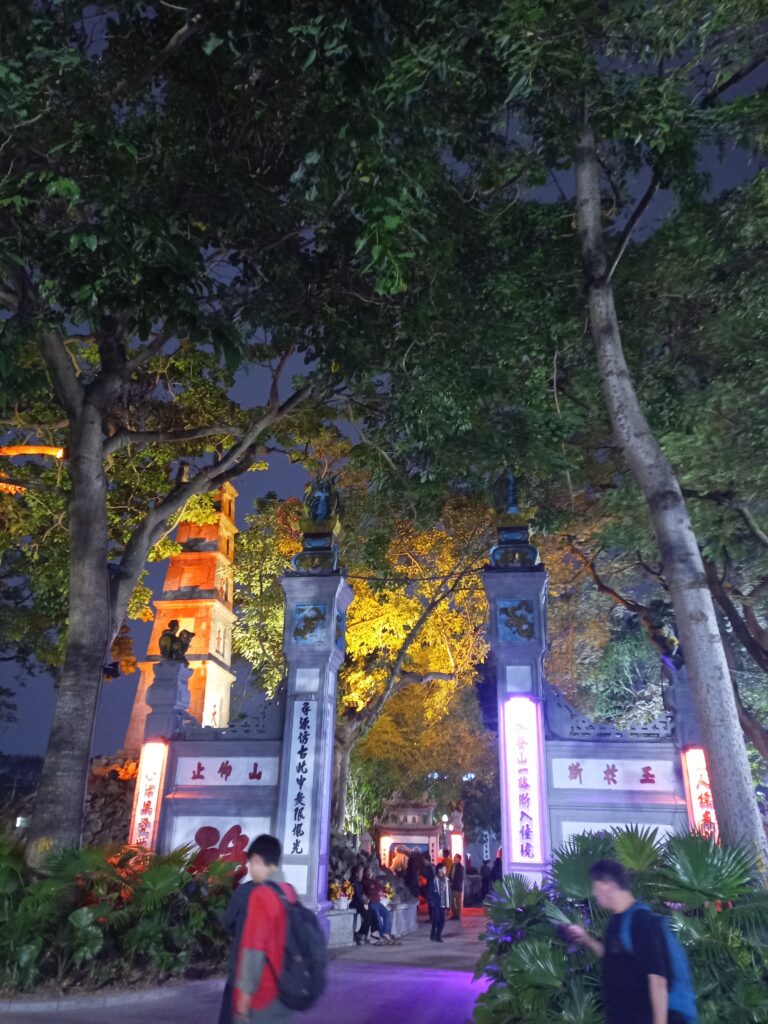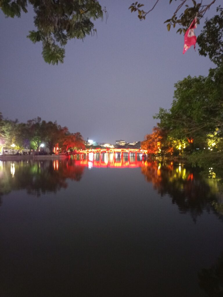 ホアンキエム湖の周りをホテルに向かって歩いていると、光る橋を発見しましたので渡ることにしました。