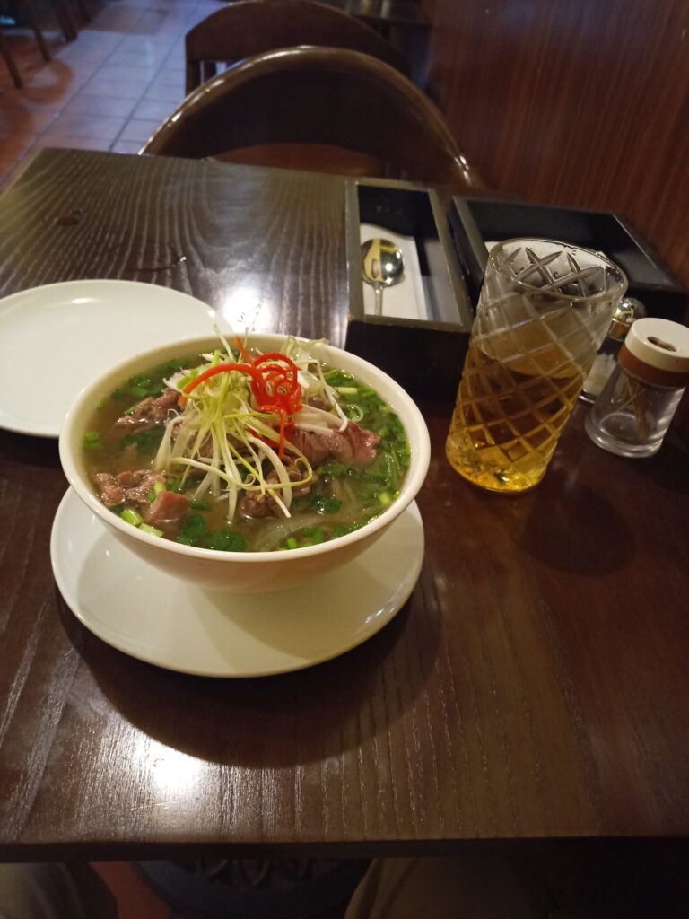 タンロン城址を出て旧市街に戻り晩御飯。ベトナム最後の夜なので立派なお店でフォー。
